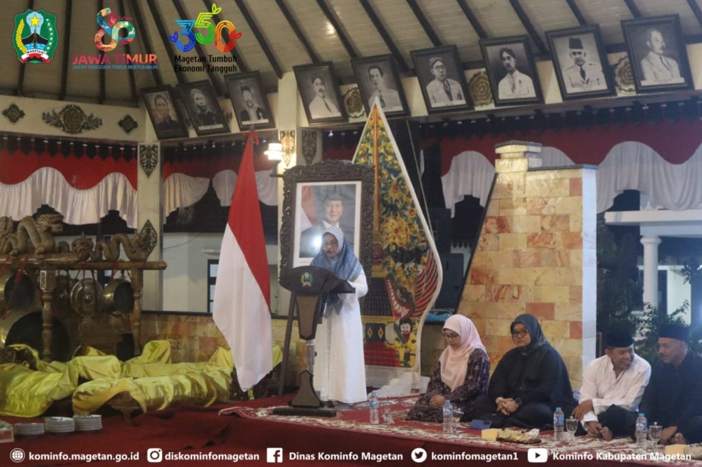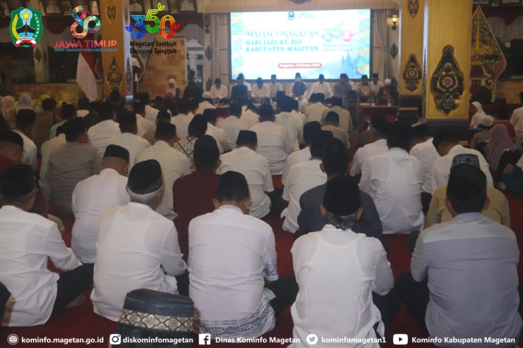 ”Doa bersama malam ini bertujuan untuk mengenang kembali serta mendoakan para leluhur pendiri Magetan yang kita hormati. Selain itu kita memohon keselamatan dan kesejahteraan untuk Magetan kita dimasa sekarang serta dimasa yang akan datang. Sucikan niat dalam hati kita,mantapkan tekad, untuk mendoakan para leluhur Magetan,serta meneruskan cita – citanyaguna mewujudkan masyarakat Magetan yang ”baldatun toyyinatun warobbun Ghofur,” jelasnya.