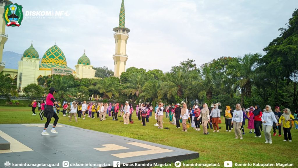 Persatuan Wanita Olahraga Seluruh Indonesia (Perwosi) Kabupaten Magetan menggelar kegiatan senam sehat bersama di Alun-Alun Magetan, Jumat (19/12). Kegiatan ini berlangsung meriah dan diikuti ratusan peserta dari berbagai kalangan masyarakat.