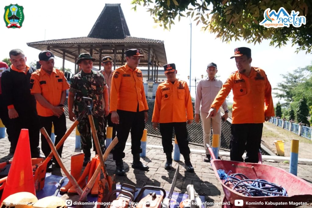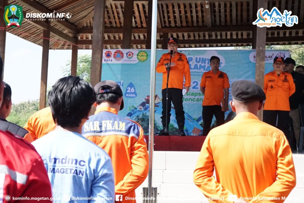 Apel dipimpin langsung oleh Wakil Bupati Magetan, Suyatni Priasmoro S.H, M.H yang sekaligus membuka Pelatihan Pencegahan dan Mitigasi Bencana yang digelar oleh BPBD Magetan. Dalam amanatnya Wakil Bupati Magetan menyampaikan pentingnya semua komponen dan elemen masyarakat di Kabupaten Magetan untuk selalu siap siaga menghadapi bencana sewaktu waktu. Kang Suyat mengingatkan bahwa di setiap musim memiliki ancaman bencana sendiri sendiri yang harus dimitigasi untuk mengurangi dampaknya.