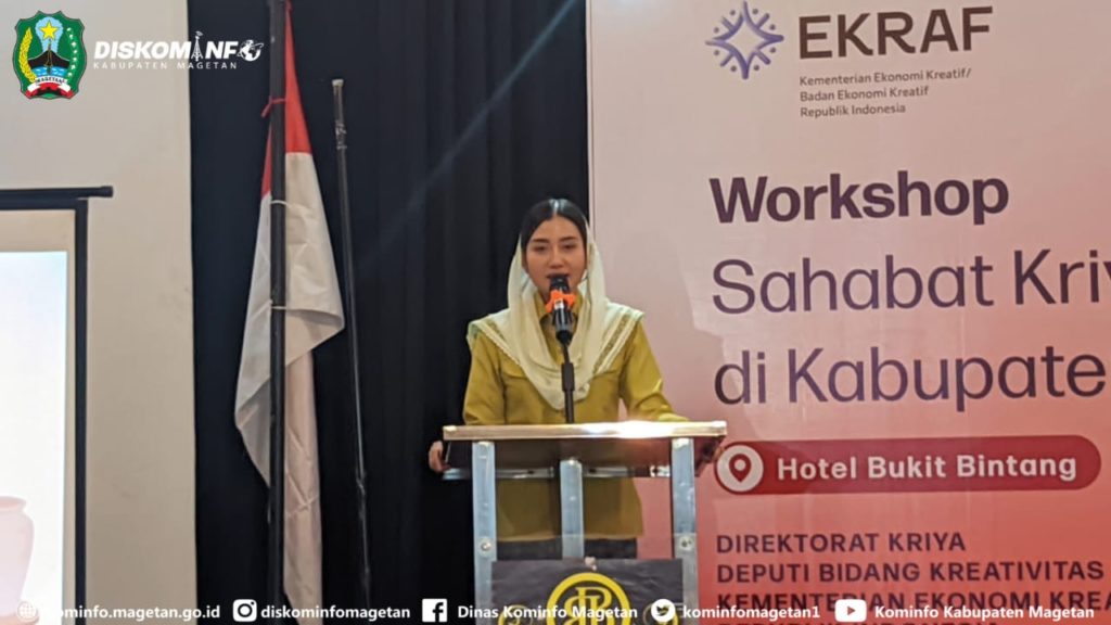 Deputi Bidang Kreativitas Budaya dan Desain Kementerian Pariwisata dan Ekonomi Kreatif (Kemenparekraf) menyelenggarakan Workshop Sahabat Kriyatif pada Jumat (12/12) di Hotel Bukit Bintang, Magetan. Kegiatan ini diikuti para pegiat kriya dari Magetan dan sejumlah daerah lain sebagai langkah strategis dalam meningkatkan kapasitas dan kualitas produk kriya lokal.