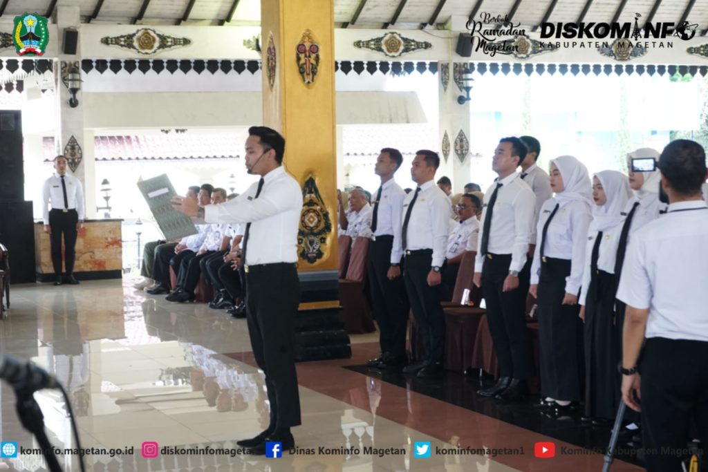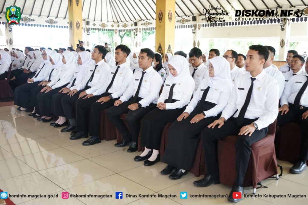 Kegiatan ini dihadiri langsung oleh Wakil Bupati Magetan Suyatni Priasmoro, Asisten Administrasi Umum, Kepala BKPSDM Magetan, serta jajaran perwakilan Organisasi Perangkat Daerah (OPD) terkait.