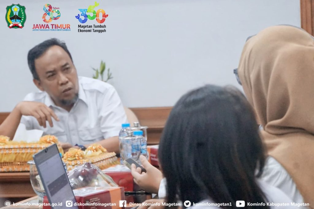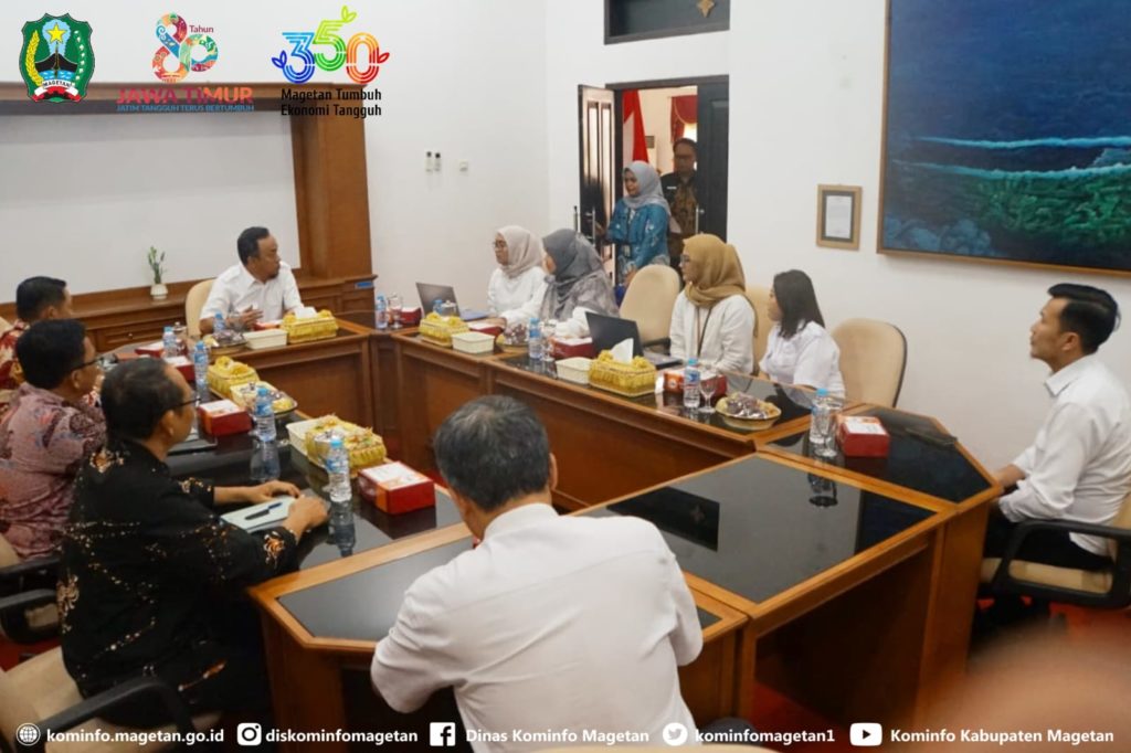 Wakil Bupati Magetan, Kang Suyat, didampingi oleh Pj. Sekretaris Daerah Muhtar Wahid dan Kepala Dinas Perindustrian dan Perdagangan Magetan, menerima kunjungan tim lapangan dari Direktorat Jenderal Prasarana Strategis Kementerian Pekerjaan Umum dan Perumahan Rakyat (PU RI) di Ruang Rapat Pendapa Surya Graha, Kamis (16/10).