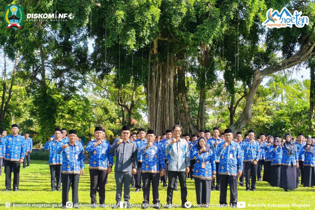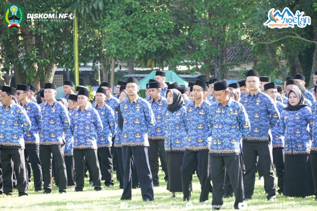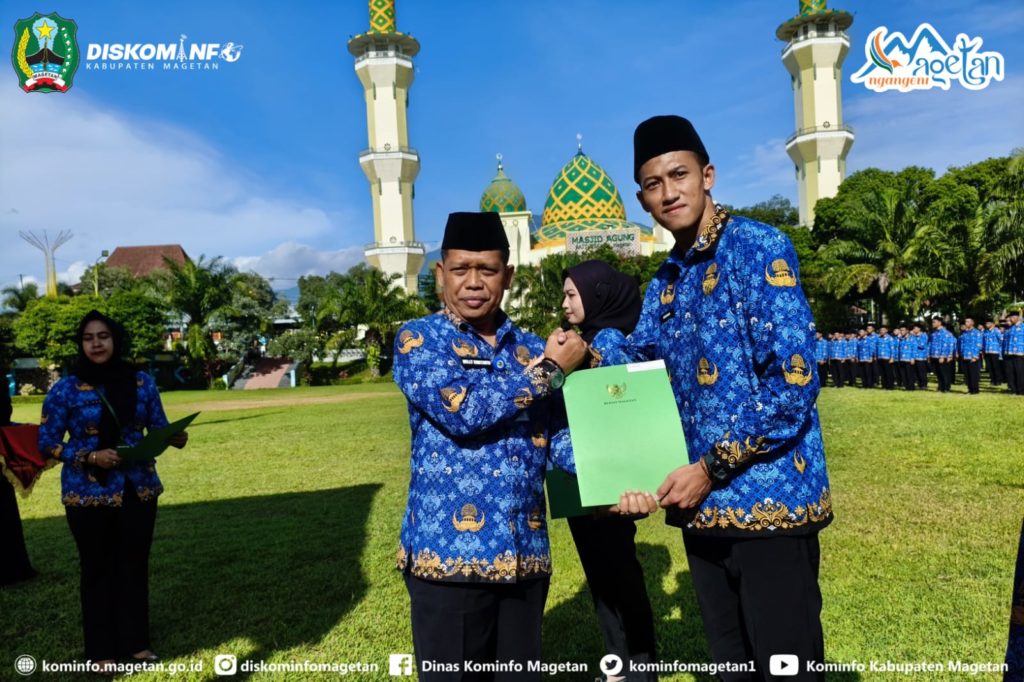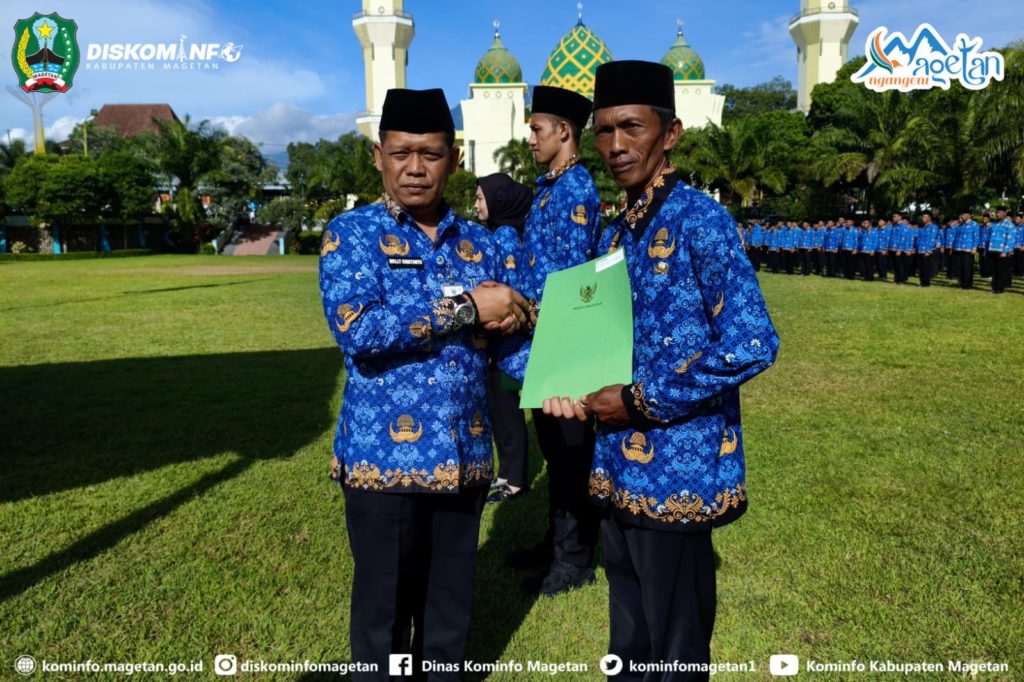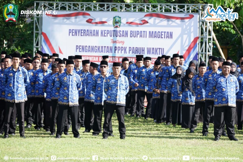 Apel Penyerahan Keputusan Bupati Magetan tentang Pengangkatan PPPK Paruh Waktu di lingkungan pemerintah Kabupaten Magetan Tahun 2025 digelar pada Selasa (16/12/25).