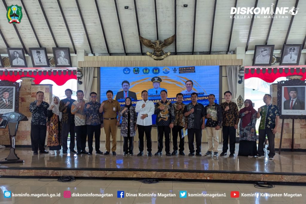 ‘Sinergi UNIPMA dalam membangun SDM unggul di Kabupaten Magetan” menjadi tema pengukuhan pengurus alumni UNIPMA. Acara digelar di Pendapa Surya Graha, Selasa (9/12/2025). Diikuti oleh Wakil Bupati Magetan, Kadin Dikpora, civitas pendidik SD sampai SMA di Magetan, serta 338 anggota yang dikukuhkan.