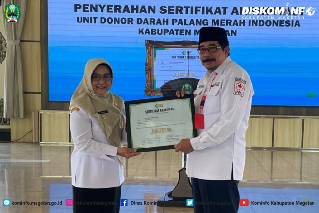Lebih lanjut, Bambang kemudian menginformasikan akreditasi PMi Magetan, “Perlu kami sampaikan berkat dukungan Pemkab Magetan kami mendapatkan akreditasi dengan hasil lulus maksimal yaitu paripurna. Mudah-mudahan ini menjadi motivasi untuk lebih memberikan pelayanan yang terbaik bagi masyarakat,” ungkapnya.
