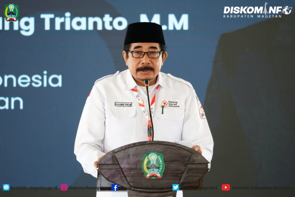 Dalam sambutannya, Ketua PMI Magetan Bambang Trianto sampaikan terima kasihnya atas dukungan dari berbagai pihak yang telah membantu PMI dalam menjalankan perannya.
