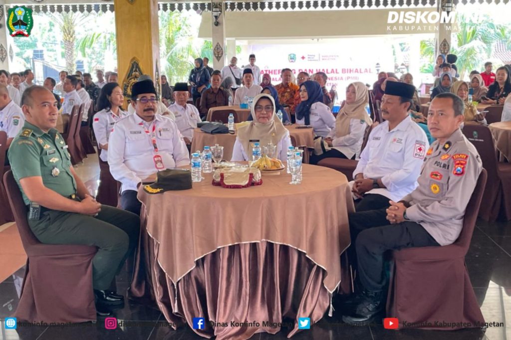 PMI sebagai organisasi yang bergerak di bidang sosial, seperti penanganan bencana, donor darah, dan pertolongan pertama, serta bagian dari gerakan Palang Merah Internasional punya peran penting di masyarakat. Hal tersebut kembali ditekankan saat ” Gathering dan Halal Bihalal PMI Magetan” yang digelar di Pendapa Surya Graha, Rabu (15/4/26). Kegiatan ini diikuti Bupati Magetan, Forkopimda, Ketua pengurus PMI Magetan, Asisten Administrasi Pembangunan, Karutan Magetan dan relawan PMI.