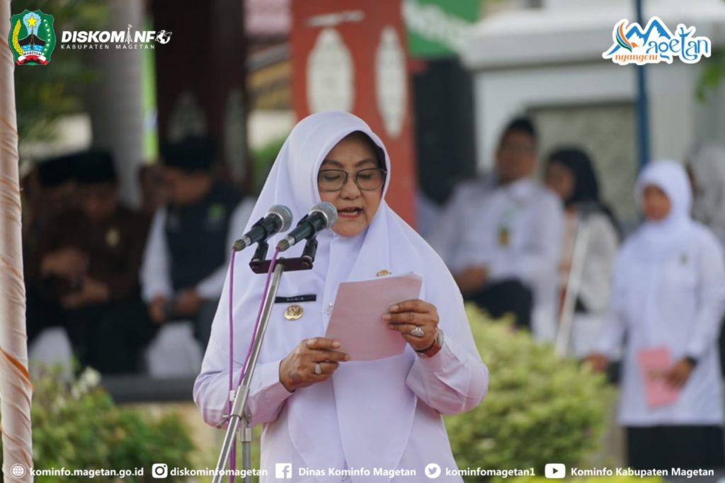 Dalam amanatnya, Bupati Nanik Sumantri membacakan sambutan tertulis Menteri Agama RI, Nasaruddin Umar. Dimana tahun ini, HAB Kemenag ke-80 mengusung tema “Umat Rukun dan Sinergi, Indonesia Damai dan Maju”.