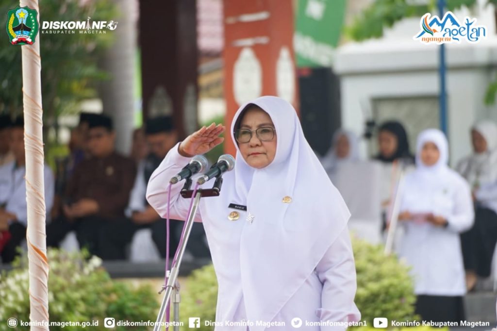 Puncak peringatan Hari Amal Bakti (HAB) Kementerian Agama (Kemenag) RI ke-80 di Kabupaten Magetan berlangsung semarak dan penuh khidmat. Upacara yang digelar di Alun-Alun Magetan, Sabtu (3/1/26), dipimpin langsung oleh Bupati Magetan, Nanik Sumantri, yang bertindak sebagai Inspektur Upacara.