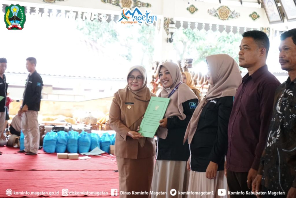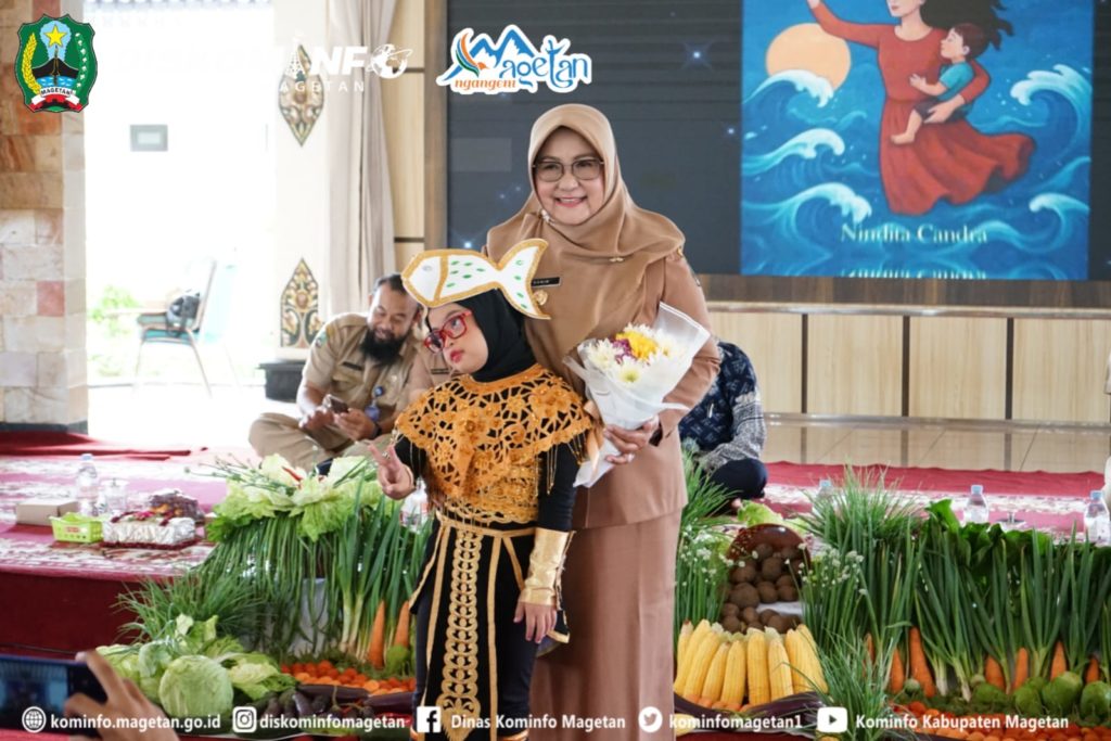 Peringatan Hari Ibu dan Launching Buku YAGAMA Seri 2 ditandai dengan penyerahan secara simbolis buket bunga dan Buku YAGAMA Seri 2 dari anak-anak kepada Bupati Magetan.
