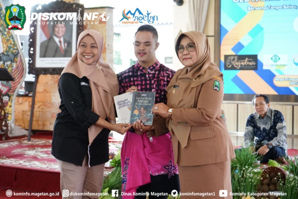 Dalam rangkaian acara Gebyar Hari Disabilitas Internasional 2025, anak-anak hebat penyandang disabilitas menyampaikan ucapan Hari Ibu dengan menyerahkan buket bunga kepada Bupati Magetan. Kegiatan tersebut berlangsung dengan penuh kehangatan dan makna. Pada kesempatan yang sama, dilakukan Launching Buku YAGAMA Seri 2 sebagai bagian dari penguatan literasi dan dokumentasi pembelajaran bagi anak-anak berkebutuhan khusus.