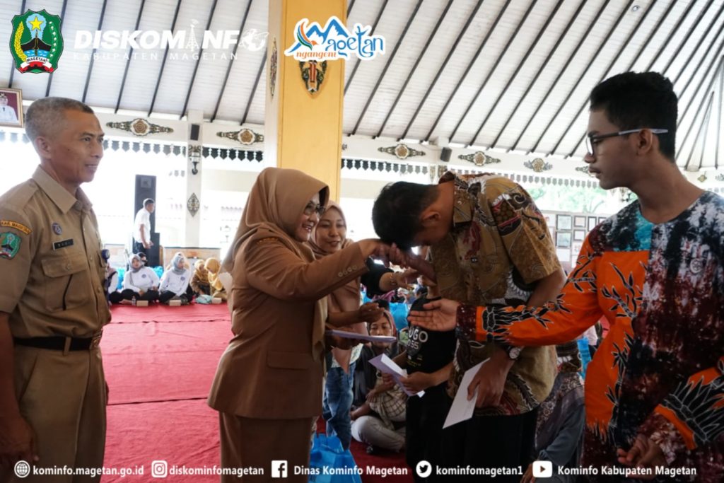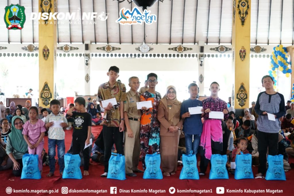 Rangkaian acara ditutup dengan pemberian santunan secara simbolis kepada anak-anak penyandang disabilitas, berupa paket sembako dari Dinas Sosial Kabupaten Magetan serta bantuan uang tunai dari Badan Amil Zakat Nasional (Baznas).
