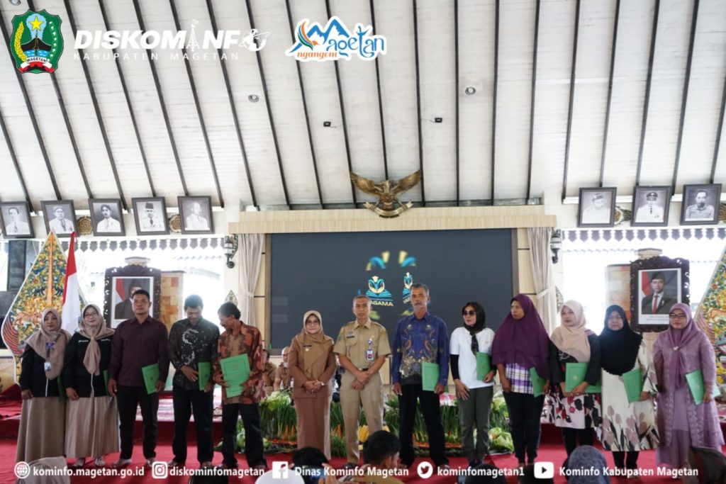 Dalam kesempatan tersebut, Bupati Magetan bersama Kepala Dinas Sosial Kabupaten Magetan juga menyerahkan Piagam Penghargaan kepada Tutor Sekolah Kunjung dan Orang Tua Hebat sebagai bentuk apresiasi atas dedikasi dan peran aktif mereka dalam mendampingi anak-anak penyandang disabilitas.