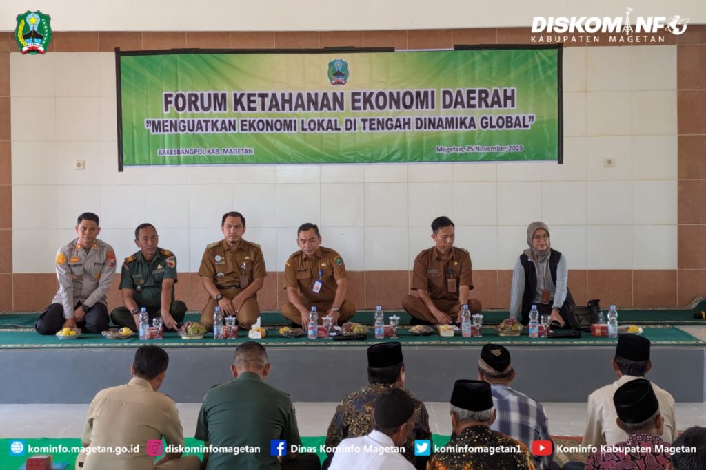 Kabid Politik Dalam Negeri dan Organisasi Kemasyarakatan Zaini Suryono menyampaikan, dengan mengambil tema, ‘Menguatkan Ekonomi Lokal Di Tengah Dinamika Global’. “Acara ini bertujuan untuk menyediakan ruang diskusi strategis demi memperkuat ketahanan ekonomi daerah, mempertemukan pemangku kepentingan pemerintah, perbankan, dan masyarakat, menghasilkan rekomendasi kebijakan yang dapat mendukung stabilitas dan daya tahan ekonomi masyarakat Magetan,” ucapnya.