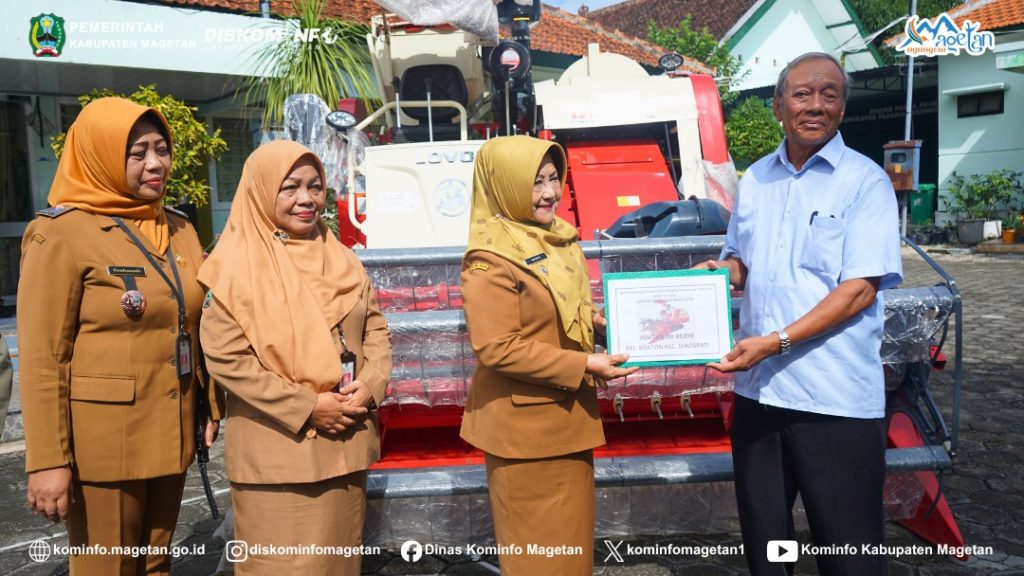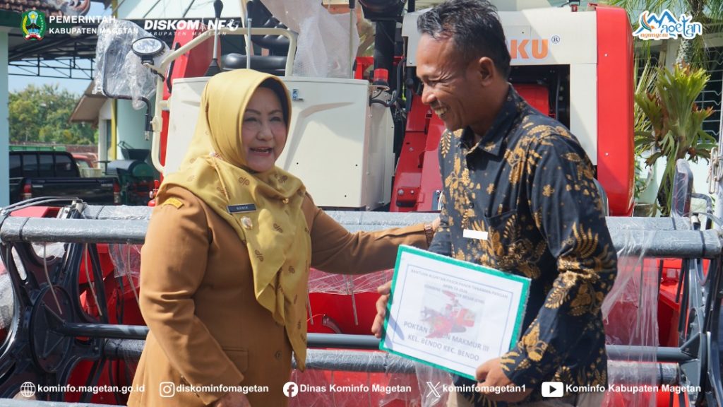 Pemerintah Kabupaten (Pemkab) Magetan melalui Dinas Tanaman Pangan Hortikultura dan Perkebunan (TPHP) berikan Alat dan Mesin Pertanian (Alsintan) berupa dua unit Combine Harvester Besar (CHB). Penyerahan secara langsung diberikan oleh Bupati Magetan, Nanik Endang Rusminiarti kepada perwakilan Kelompok Tani (Poktan) Rukun Makmur III Kelurahan Bendo dan Sri Rejeko kelurahan Kraton, Selasa (28/4%26).