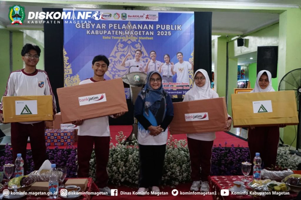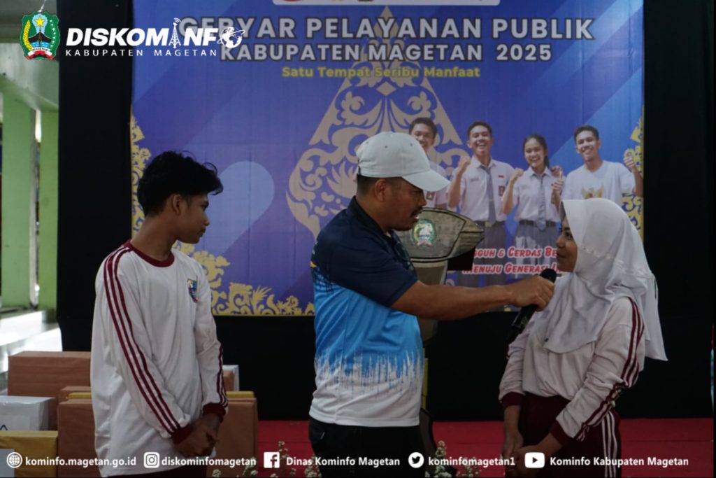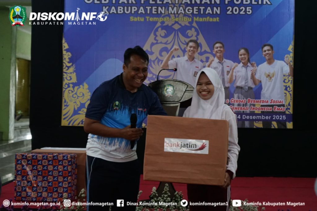 Gebyar pelayanan publik Kabupaten Magetan ini digelar Pemerintah Kabupaten Magetan melalui DPMPTSP (Dinas Penanaman Modal dan Pelayanan Terpadu Satu Pintu). Acara dihadiri Bupati Magetan, Forkopimda, Sekdakab Magetan, Kepala OPD, SMAN 1 Magetan. Minggu (14/12/2025).