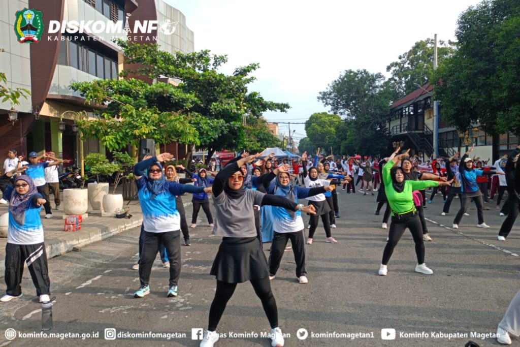 Acara diawali dengan senam pagi bersama di halaman timur MPP Magetan (Mal Pelayanan Publik), yang selanjutnya bergeser ke selatsar MPP. Dalam acara ini juga diserahkan sertifikat halal pada pedagang di CFD Magetan secara simbolis kepada 5 orang.