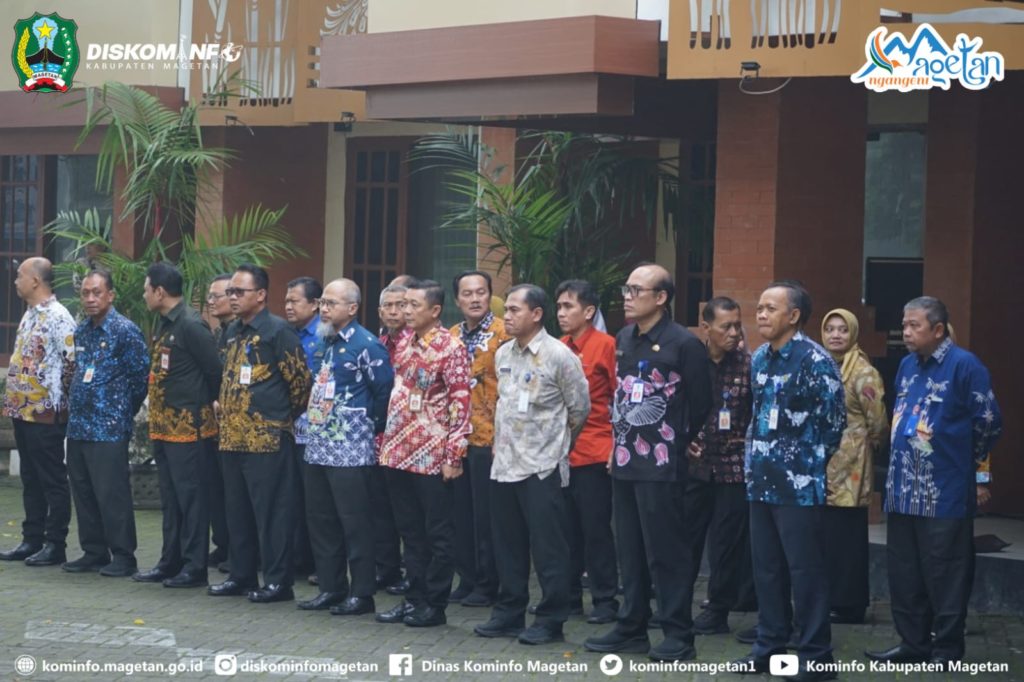 “Di tahun 2026 ini, Bapak Ibu harus lebih meningkatkan kualitas layanan. Sekarang zamannya digital, kita harus mengikuti program yang berbasis teknologi. ASN Pemkab Magetan tidak boleh ketinggalan teknologi,” imbau Bupati.