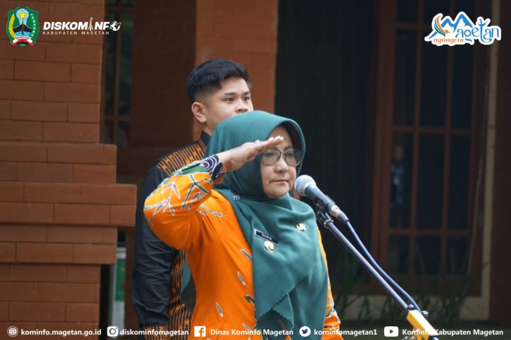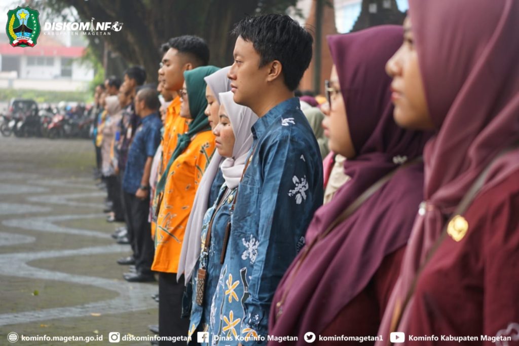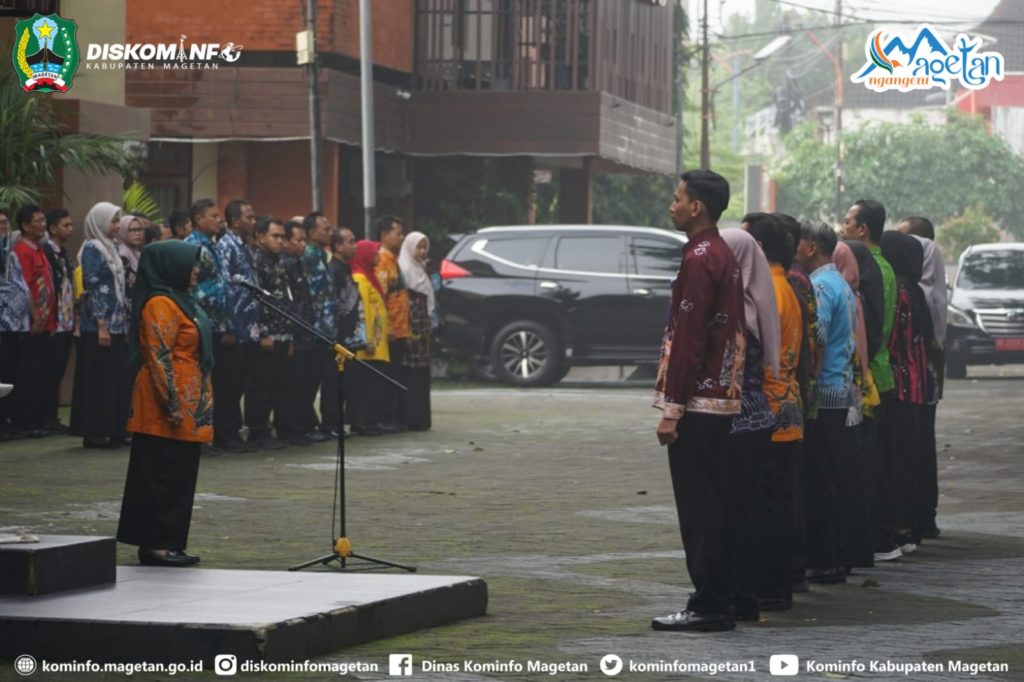 Pemerintah Kabupaten (Pemkab) Magetan menggelar Apel Pagi Perdana di tahun 2026, Jumat (2/1/26). Apel yang dilaksanakan di Halaman Kantor Bupati Magetan ini dipimpin langsung oleh Bupati Magetan Hj. Nanik Sumantri, S.Pd, M.Pd. dan diikuti oleh seluruh Aparatur Sipil Negara (ASN) dilingkungan Setda serta Ka. OPD dan Camat se-Kab. Magetan.