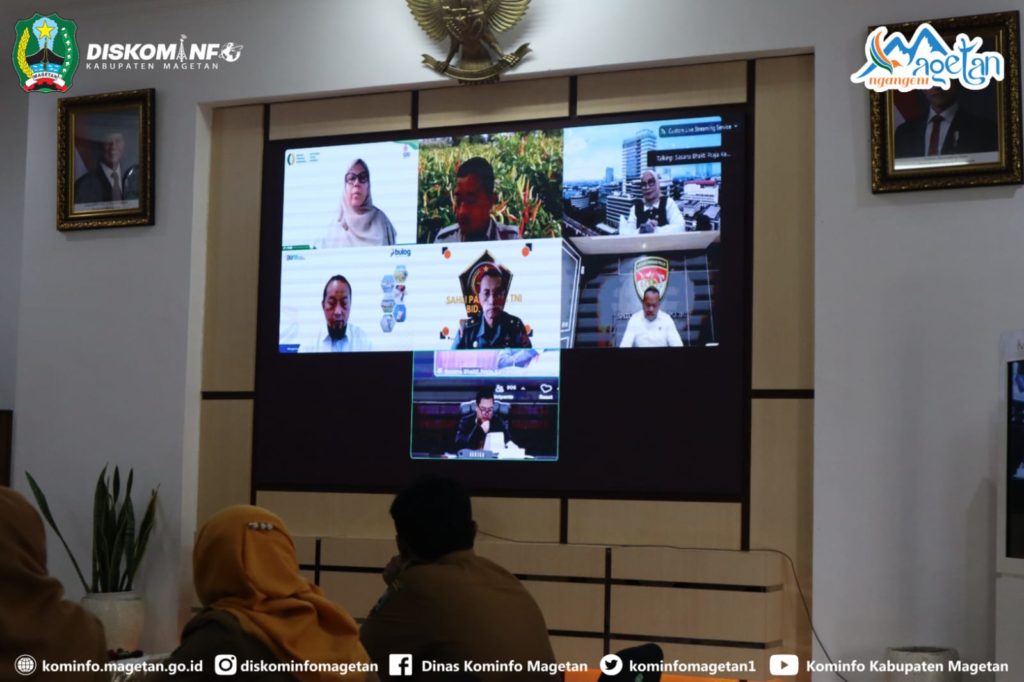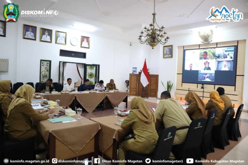 Rakor yang diikuti Kementerian/Lembaga, serta seluruh kepala daerah se-Indonesia tersebut juga diikuti Pemerintah Kabupaten Magetan secara daring dari Ruang Jamuan Pendopo Surya Graha.