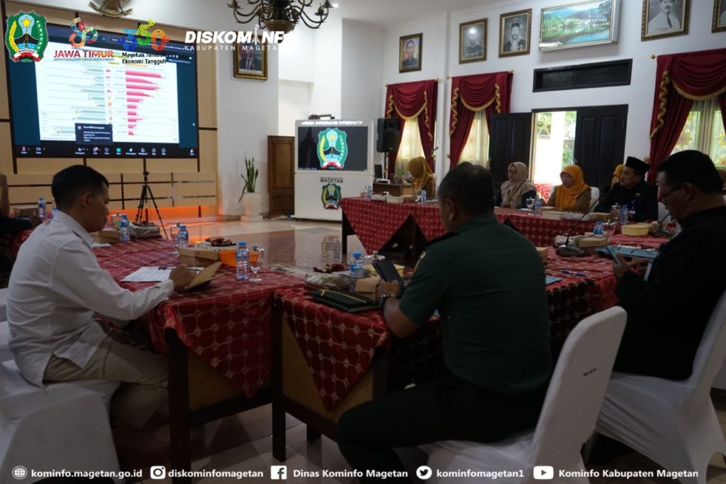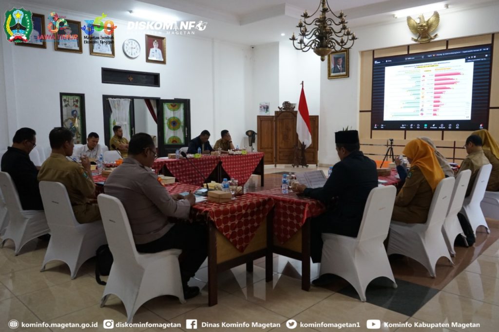 Untuk Kabupaten Magetan, kegiatan ini diikuti secara daring dari Ruang Jamuan Pendopo Surya Graha, hadir dalam kesempatan tersebut Pj. Sekretaris Daerah Kabupaten Magetan, Muhtar Wakid, S.ST., M.T., bersama perwakilan kepala OPD dan tamu undangan lainnya.