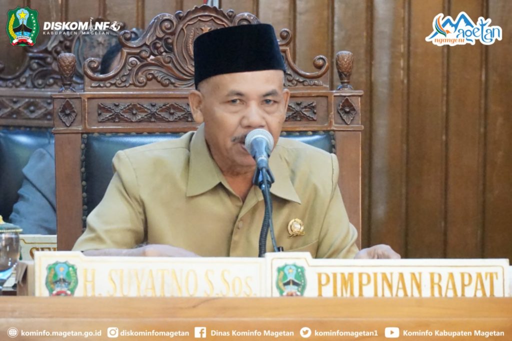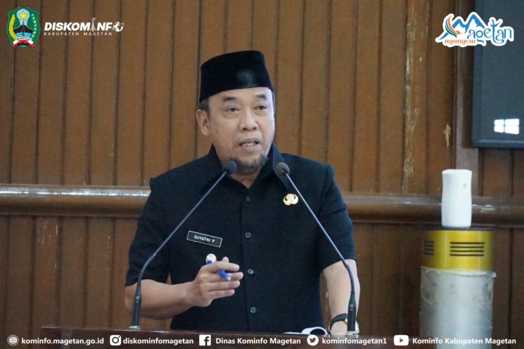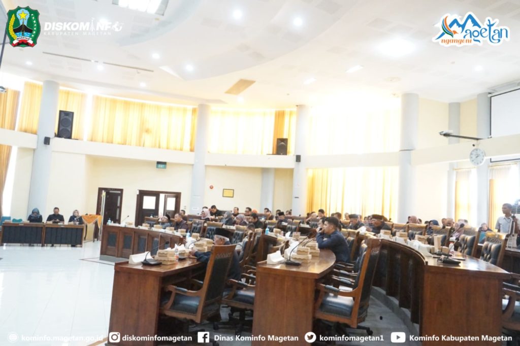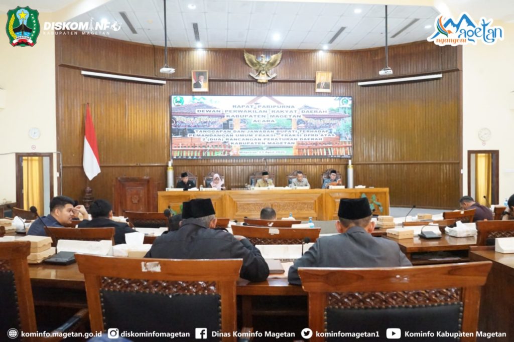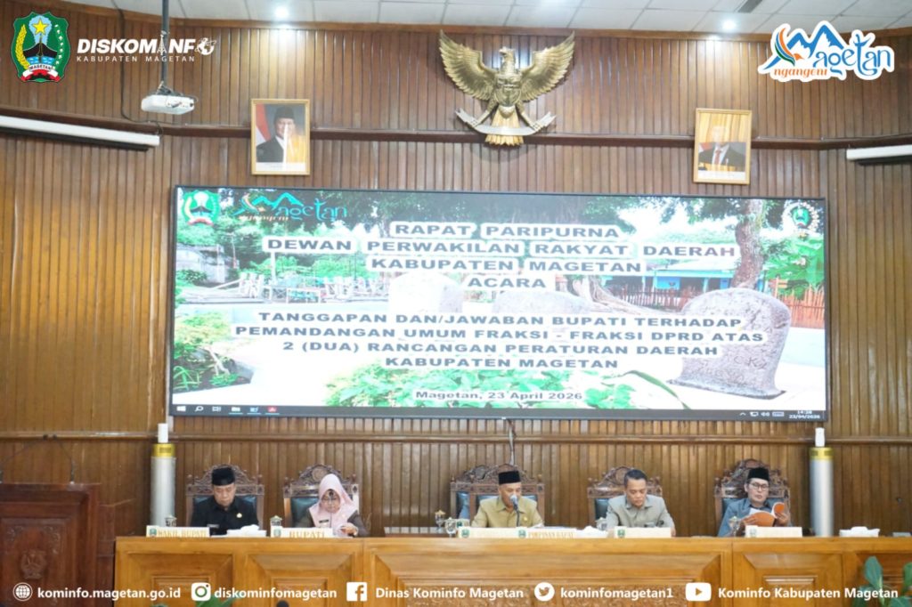 Pemerintah Kabupaten Magetan melalui Bupati Magetan, Hj. Nanik Sumantri, M.Pd menyampaikan tanggapan dan jawaban atas pemandangan umum fraksi-fraksi DPRD dalam Rapat Paripurna DPRD Kabupaten Magetan, Kamis (23/4/26).
