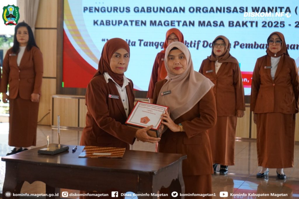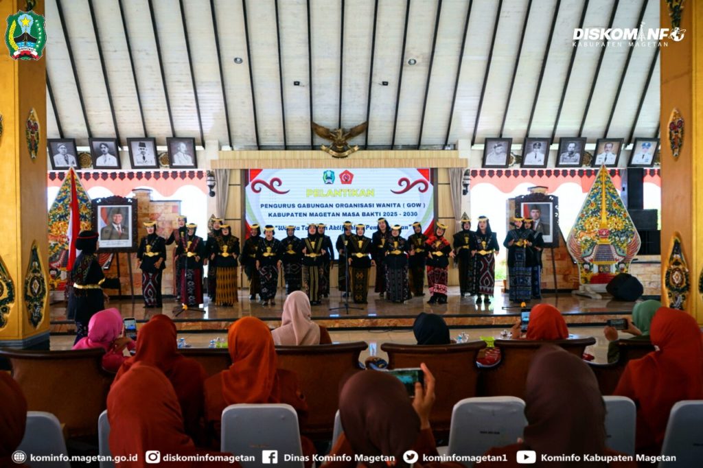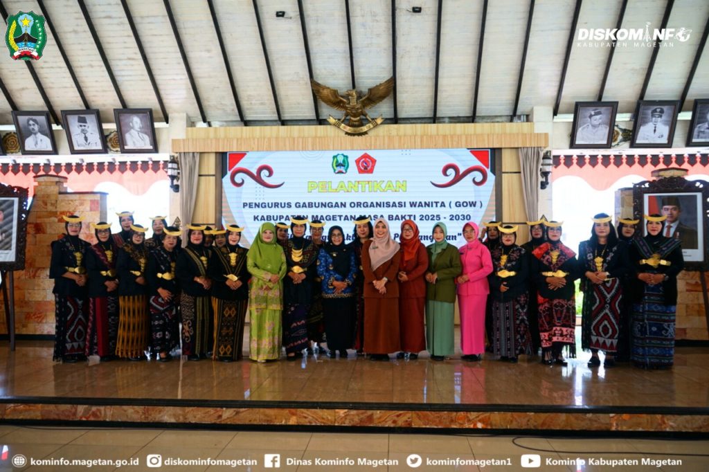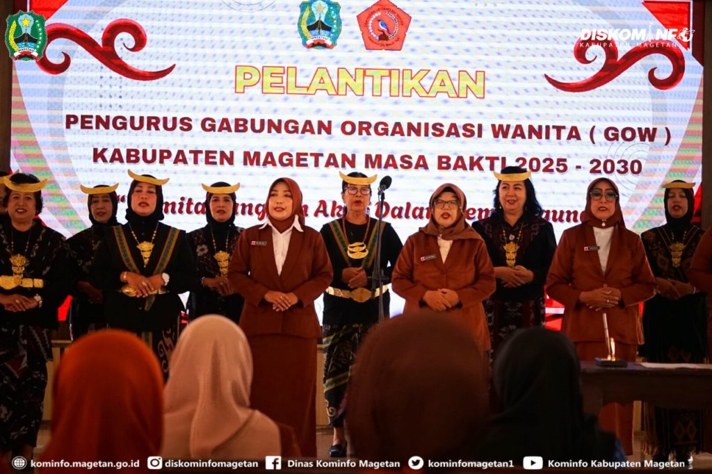 Pengurus Gabungan Organisasi Wanita (GOW) Kabupaten Magetan Masa Bhakti 2025–2030 resmi dilantik pada Senin (17/11/2025) di Pendopo Surya Graha.. Mengusung tema “Wanita Tangguh Aktif dalam Pembangunan”, pelantikan ini menjadi momentum penting sebagai sarana untuk memperkuat peran perempuan di berbagai sektor pembangunan daerah.