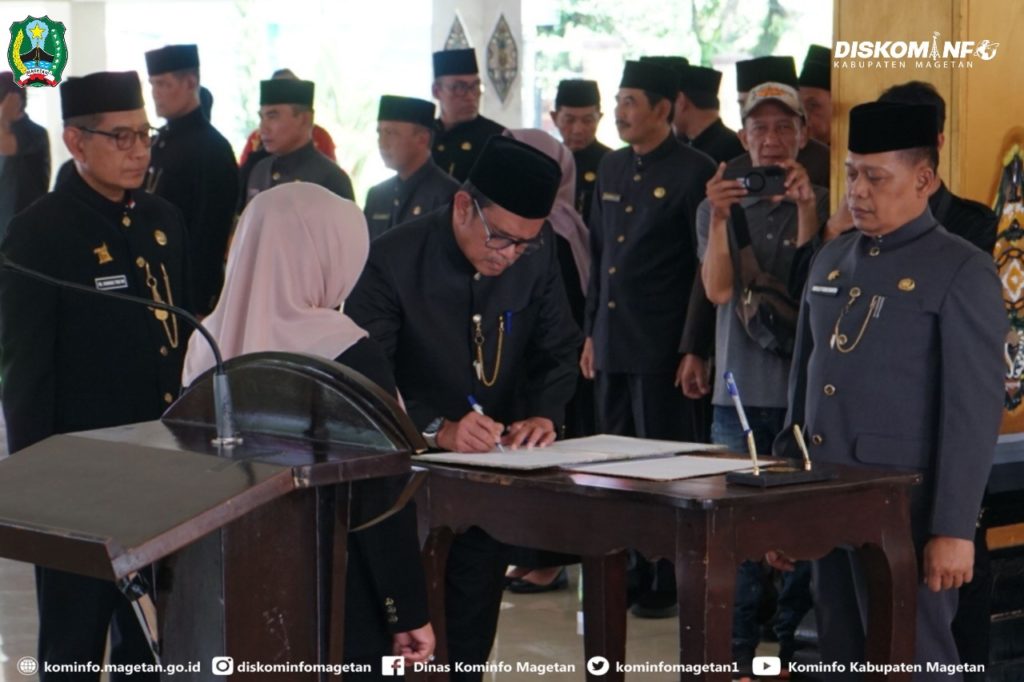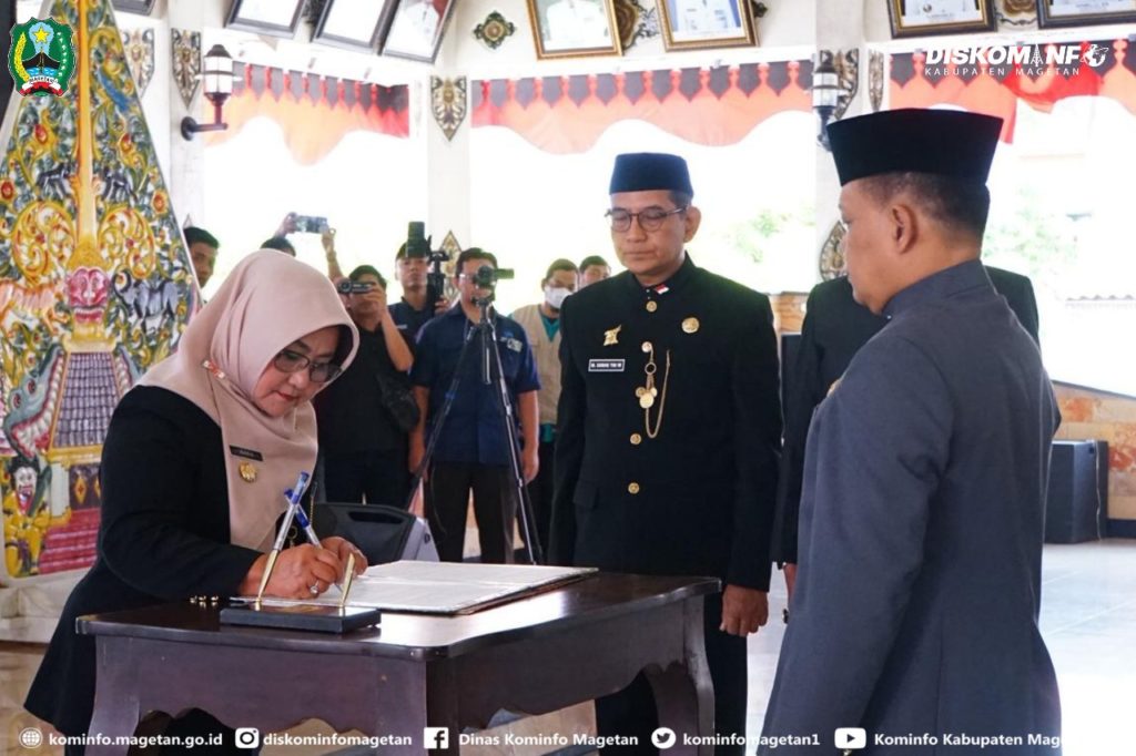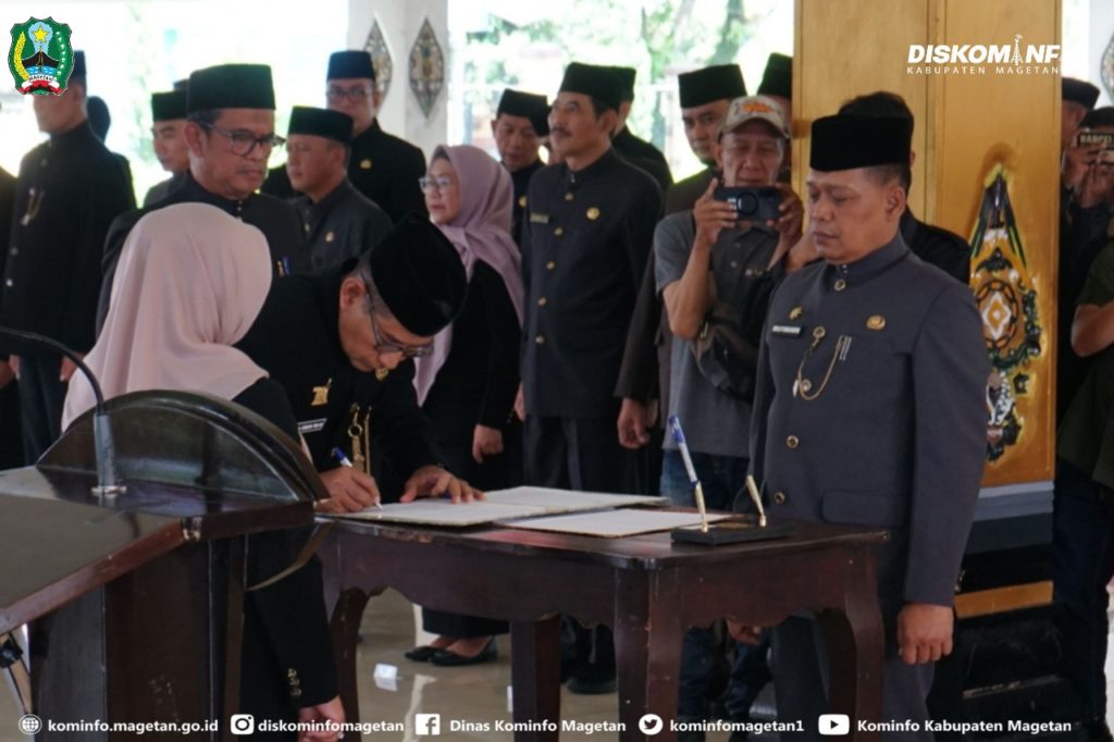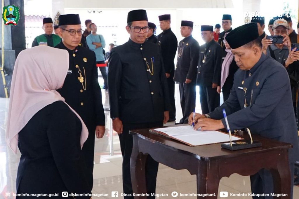 “Sebagaimana kita ketahui bersama bahwa Pemerintah Kabupaten Magetan telah mengalami kekosongan jabatan Sekretaris Daerah selama beberapa waktu, ini merupakan tantangan tersendiri dalam menjaga akselerasi roda pemerintahan dan pelayanan publik khususnya di Kabupaten Magetan,” ujarnya.