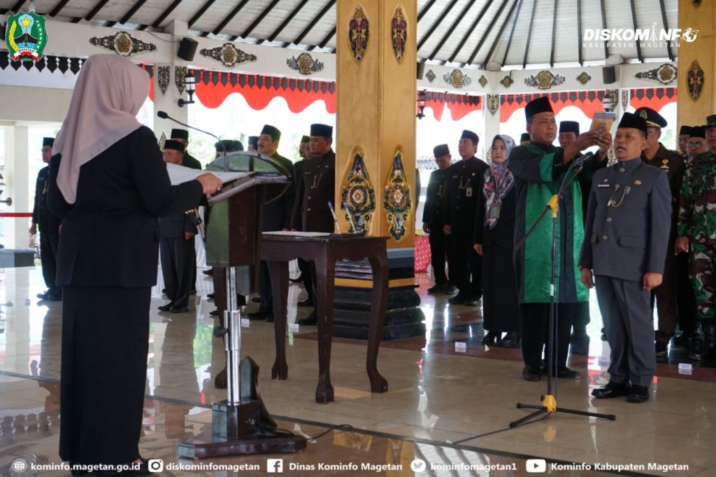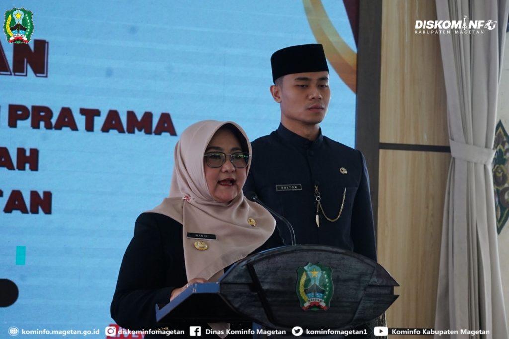 Dalam sambutannya, Bupati Magetan Nanik Sumantri menyampaikan bahwa pelantikan Sekda dilakukan melalui proses seleksi yang terbuka secara transparan, akuntabel, dan berbasis meritokrasi.