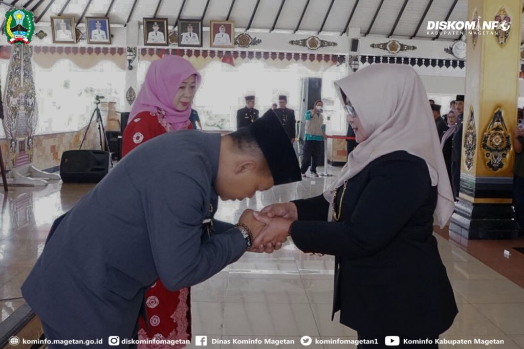 Di akhir sambutannya, Bupati Magetan menyampaikan ucapan selamat kepada Sekretaris Daerah yang baru sekaligus memberikan apresiasi kepada Pj Sekda sebelumnya.