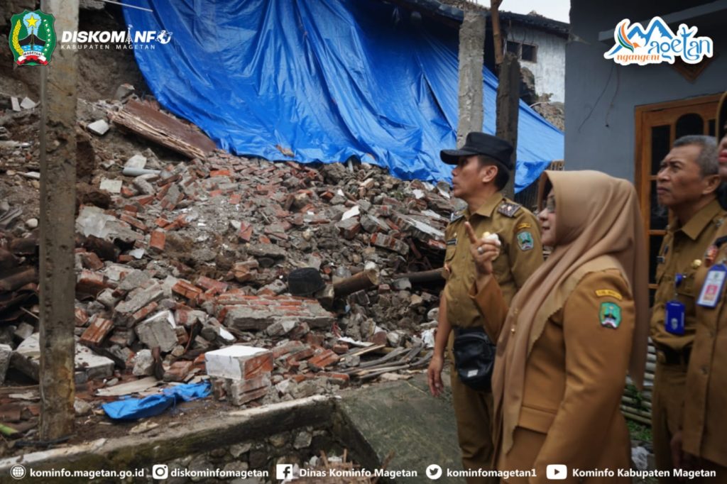Lanjutkan kegiatan dinas hari ini, setelah menjenguk korban musibah kecelakaan kerja konstruksi KDMP di Desa Sidomulyo Sidorejo. Bupati Magetan, Hj. Nanik Sumantri, M.Pd., kemudian hadir secara langsung ke Desa Buluharjo, Kecamatan Plaosan untuk menyambangi warganya yang sedang berduka. Kunjungan ini bukan sekadar urusan birokrasi, melainkan bentuk kehadiran pemerintah untuk memberikan dukungan moril bagi Nita dan Tukiran, warga setempat yang terdampak tanah longsor, Senin (23/2/26).