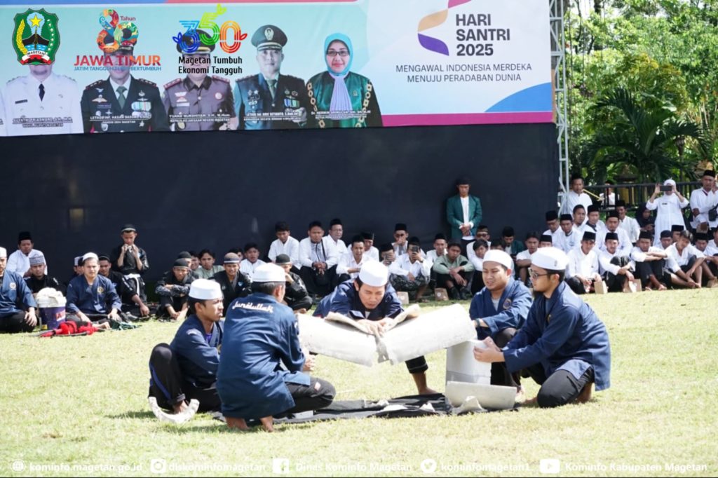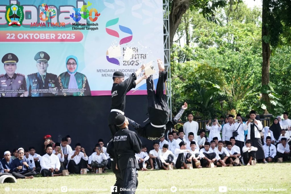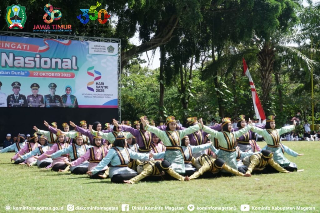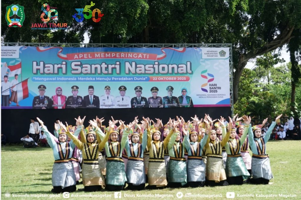 Cerahnya cahaya mentari pagi memantul dari rumput hijau Alun-Alun Magetan, Rabu (22/10/2025), ketika ratusan santri dengan pakaian putih-putih berbaris rapi mengikuti Apel Peringatan Hari Santri Nasional 2025. Dengan tema “Mengawal Indonesia Merdeka Menuju Peradaban Dunia,” apel berlangsung khidmat dan penuh semangat.