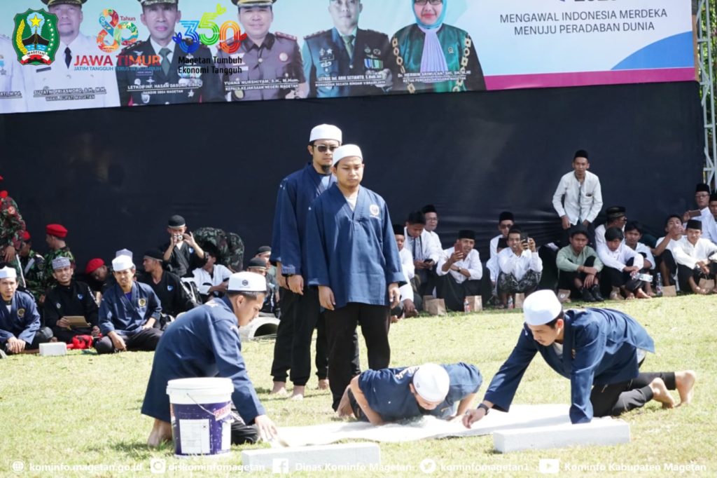 Suasana pun hening sesaat, tetiba lalu dentuman rebana menggema mengiringi atraksi seni bela diri yang ditampilkan para santri Pondok Pesantren Al-Fatah Temboro. Pertunjukan tersebut bukan sekadar tontonan, melainkan visualisasi dari nilai pendidikan dan spiritualitas santri, sebagaimana tertulis dalam naskah pengantar mereka bahwa tujuan latihan itu adalah untuk meraih kecintaan Allah SWT dengan menjadi mukmin yang kuat sebagaimana sabda Rasulullah SAW: “Seorang mukmin yang kuat lebih baik dan lebih dicintai Allah daripada mukmin yang lemah.”