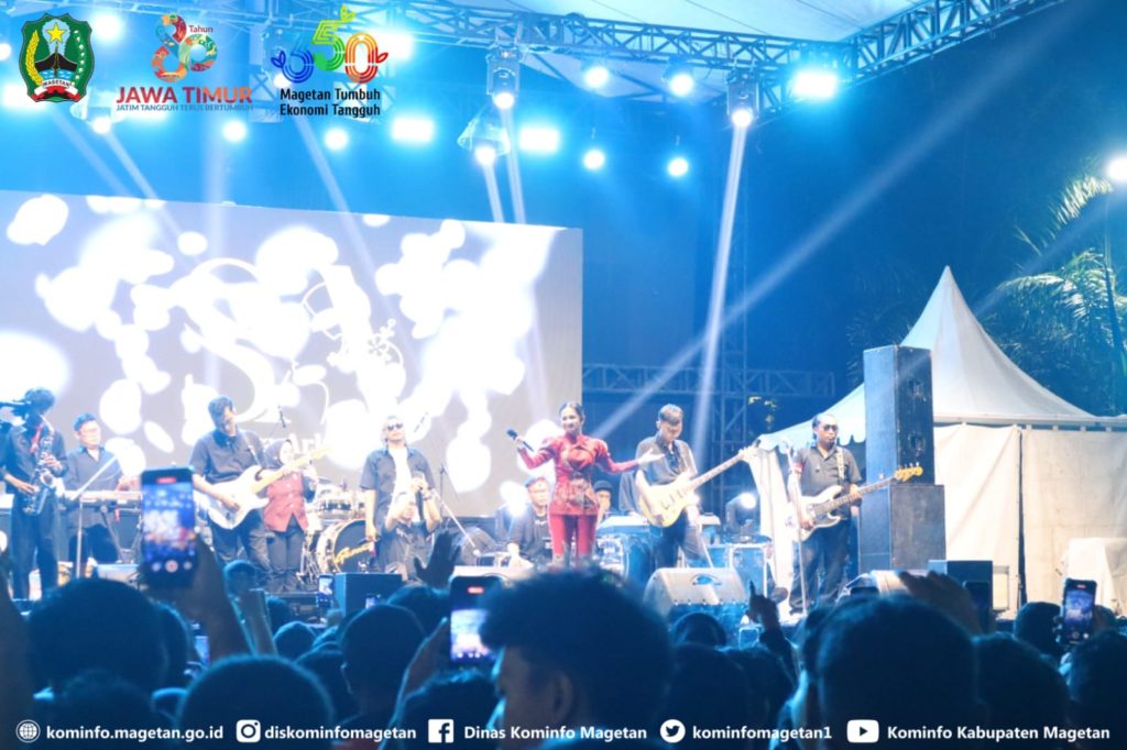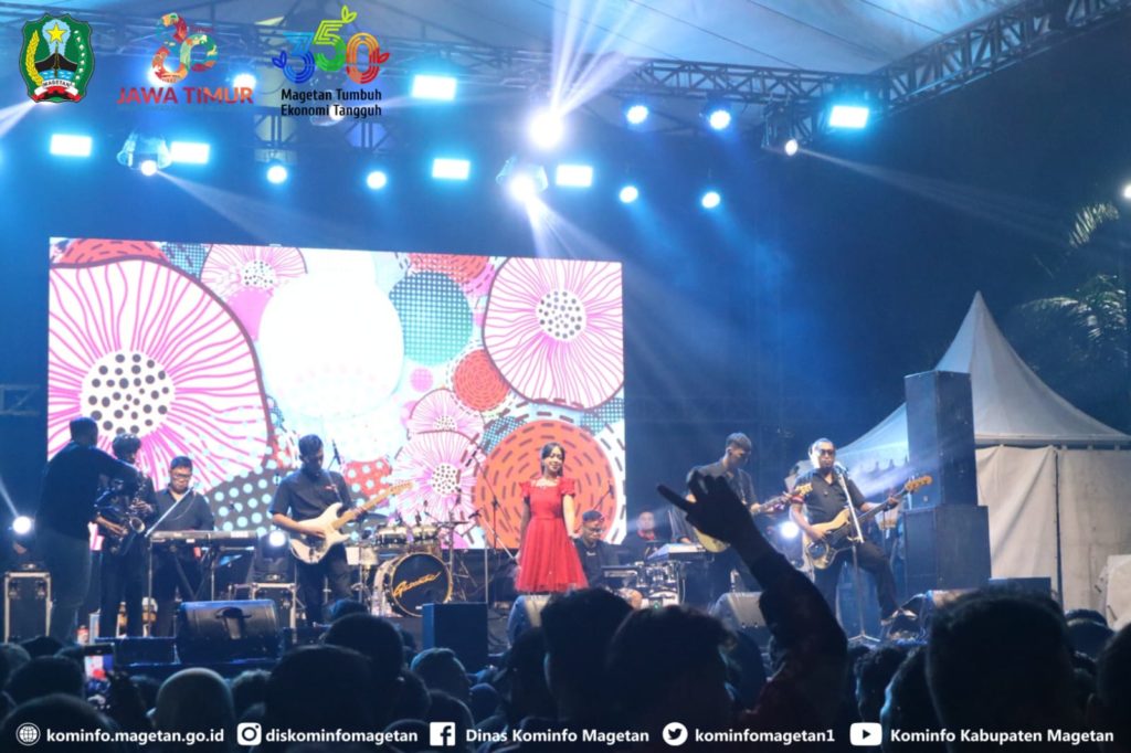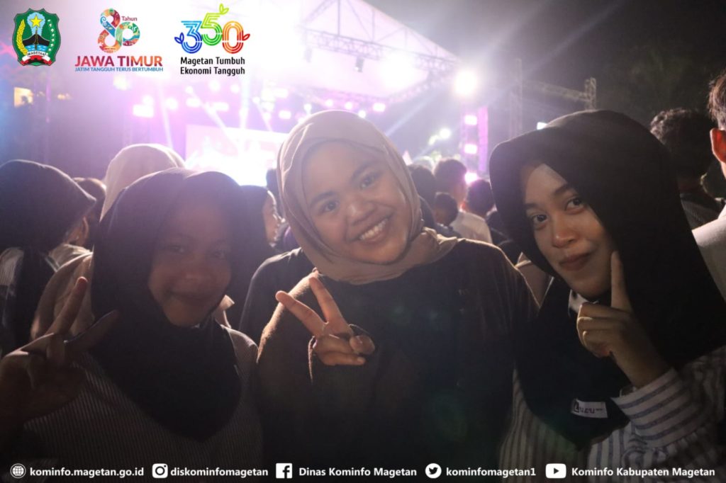 “Saya sudah nunggu acara ini dari sore. Walaupun hujan deras, nggak apa-apa, yang penting bisa ikut merayakan ulang tahun Magetan. Acaranya keren banget, panggungnya megah, dan penampilnya juga seru semua,” ungkap Rossa dengan wajah sumringah di sela-sela konser.