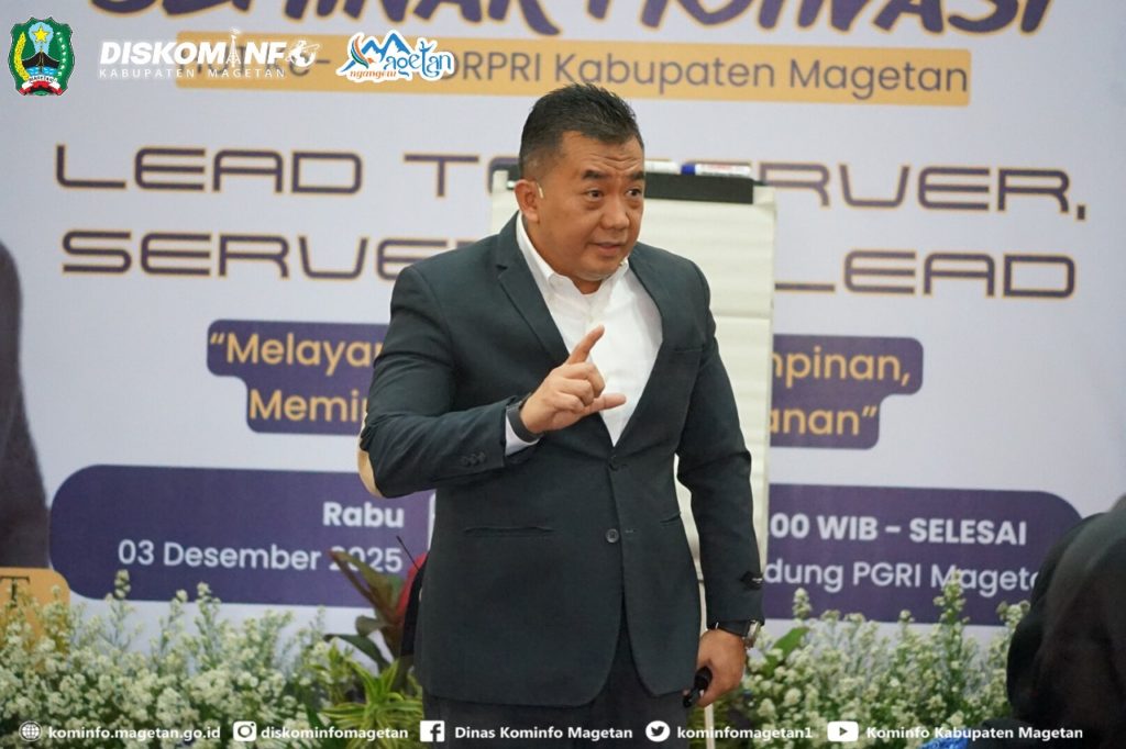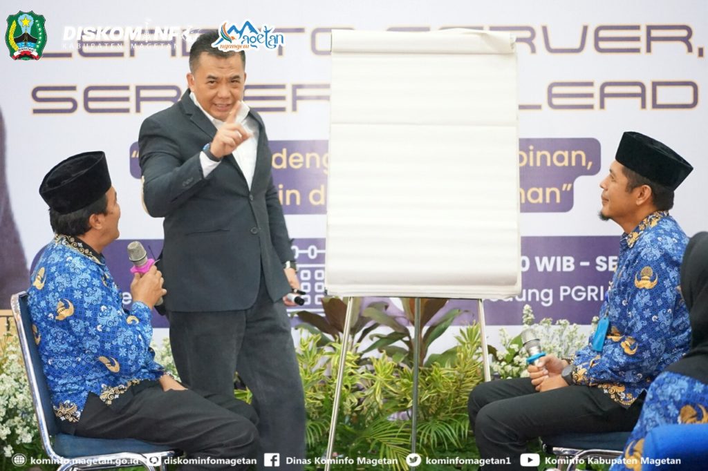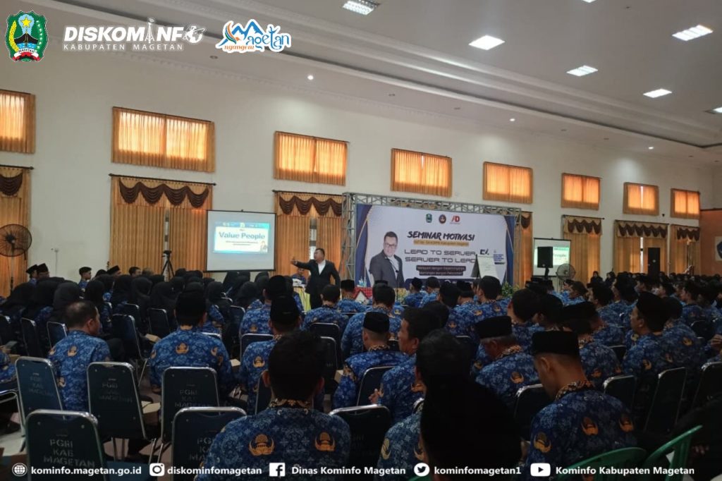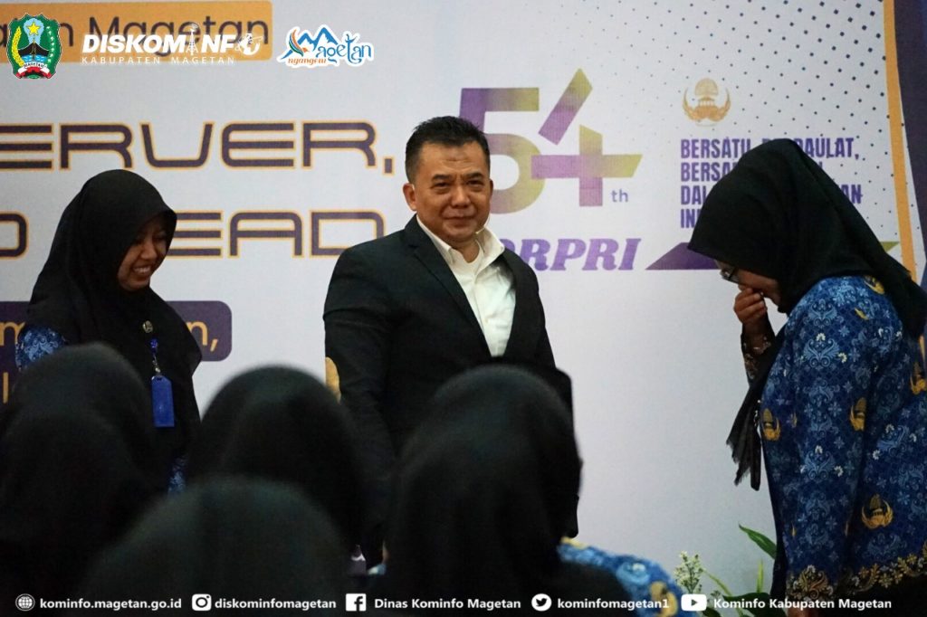Pemerintah Kabupaten Magetan menyelenggarakan Seminar Motivasi dalam rangka memperingati HUT ke-54 Korpri di Gedung Wisma PGRI Magetan, Rabu (03/12/25). Kegiatan ini menjadi ruang penguatan nilai pengabdian bagi seluruh ASN, sejalan dengan tema yang diusung: “Lead to Server, Server to Lead – Melayani dengan Kepemimpinan, Memimpin dengan Pelayanan.”