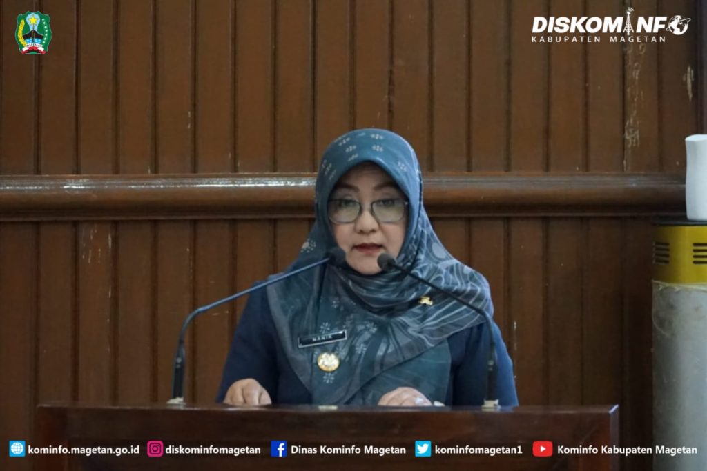 Bupati Magetan Nanik Sumantri mengucapkan terima kasih telah diberikan kesempatan untuk menyampaikan jawaban/tanggapan atas pemandangan umum fraksi-fraksi DPRD terhadap rancangan peraturan daerah tentang APBD tahun anggaran 2026. Tema pembangunan tahun 2026, “Peningkatan kualitas pelayanan