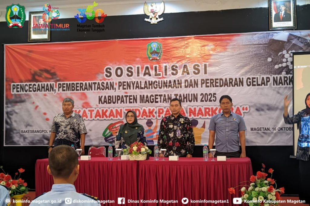 Pemerintah Kabupaten Magetan melalui Badan Kesatuan Bangsa dan Politik (Bakesbangpol) menggelar Sosialisasi Pencegahan Penyalahgunaan Narkoba di Hotel Bukit Bintang, Kamis (16/10/25).