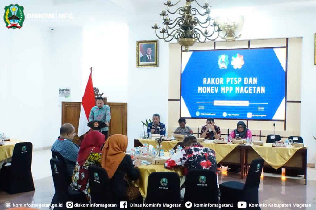 Pemerintah Kabupaten Magetan melalui Dinas Penanaman Modal dan Pelayanan Terpadu Satu Pintu (DPMPTSP) menggelar Rapat Koordinasi Monitoring dan Evaluasi Mall Pelayanan Publik (MPP) pada Jumat (21/11) di Ruang Jamuan Pendopo Surya Graha. Pertemuan ini tidak sekadar menjadi agenda rutin tahunan, melainkan sebagai ruang evaluasi kritis atas kualitas pelayanan publik sekaligus momentum memperkuat arah reformasi birokrasi daerah.