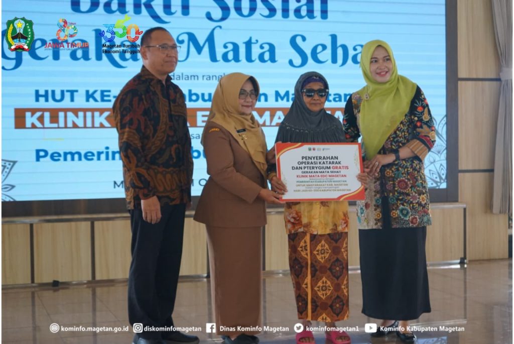 Bhakti sosial ini meliputi pemeriksaan mata gratis, operasi katarak, dan operasi pterygium gratis bagi masyarakat Kabupaten Magetan. Kegiatan tersebut menjadi salah satu bentuk kepedulian sosial sekaligus sinergi antara pemerintah daerah, Klinik EDC Magetan, dan layanan kesehatan untuk meningkatkan kualitas hidup masyarakat, khususnya di bidang kesehatan mata.