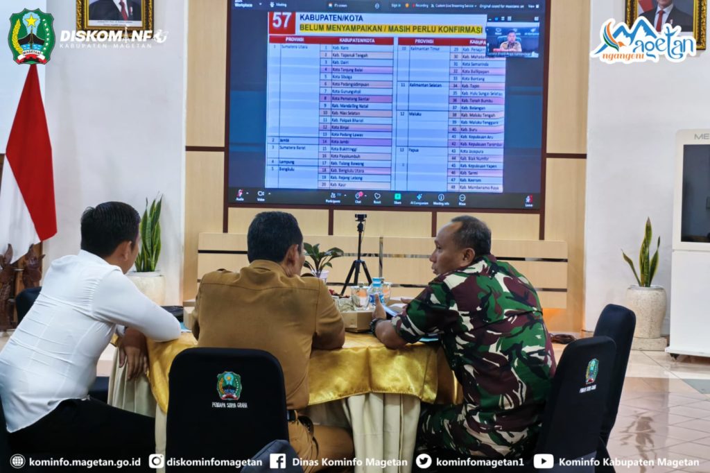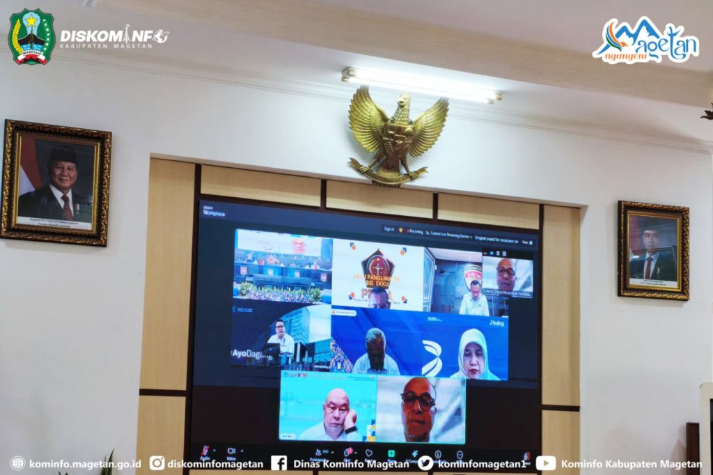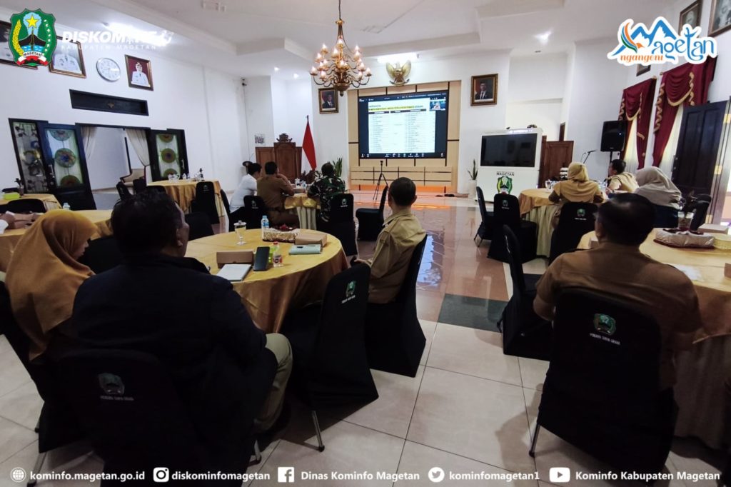 Pada Rakor Inflasi tersebut Tim TPID Kabupaten Magetan hadir secara online dari Ruang Rapat Pendapa Surya Graha.(Diskominfo:ay / fa2 / IKP1)