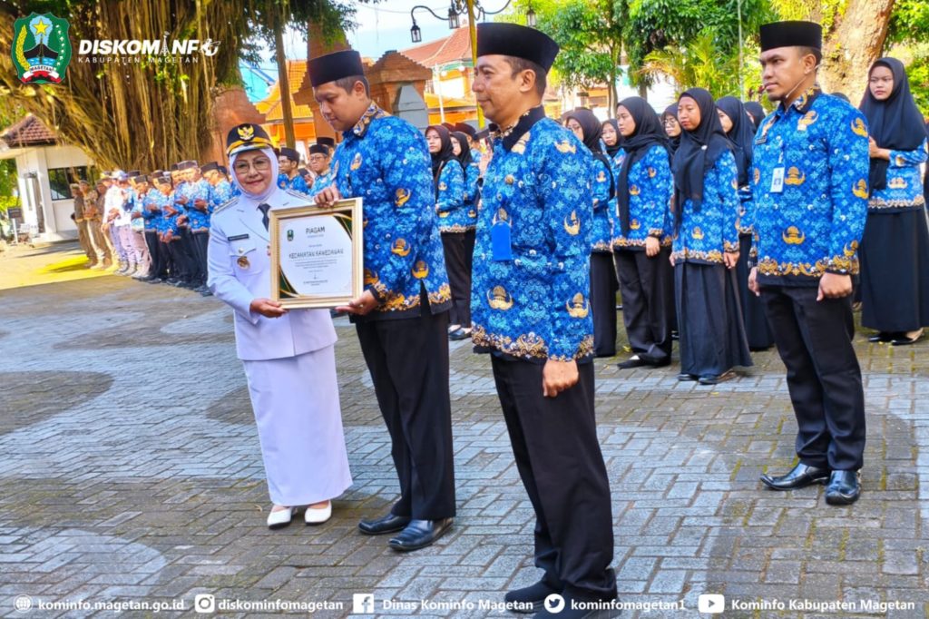 Upacara dirangkaikan dengan penyerahan piagam penghargaan kepada perangkat daerah yakni Camat Kawedanan dan Camat Nguntoronadi dalam pembangunan Zona Integritas menuju WBK (Wilayah Bebas Korupsi) yang disaksikan langsung seluruh unsur ASN di lingkungan pemerintah Kabupaten Magetan, Staf ahli dan asisten serta Kepala OPD yang hadir.(Diskominfo:ay / fa2 /