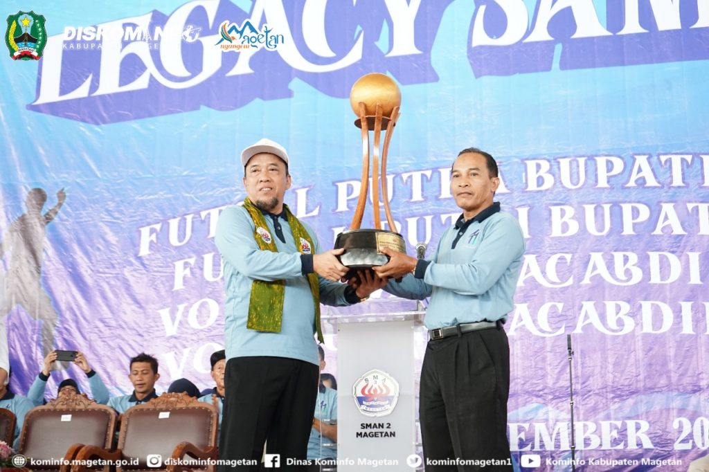 “Kunci kemajuan itu iman, ilmu, dan pergaulan yang baik. Dan satu hal yang tidak boleh dilupakan adalah berbakti kepada orang tua, terutama Ibu,” ujarnya. Ia juga mengapresiasi SMAN 2 Magetan atas penyelenggaraan turnamen dan berharap sekolah ini terus berkembang serta responsif terhadap perubahan.