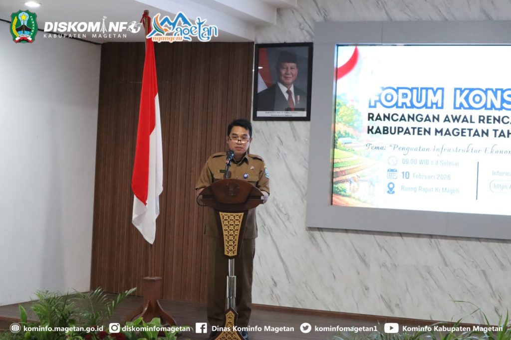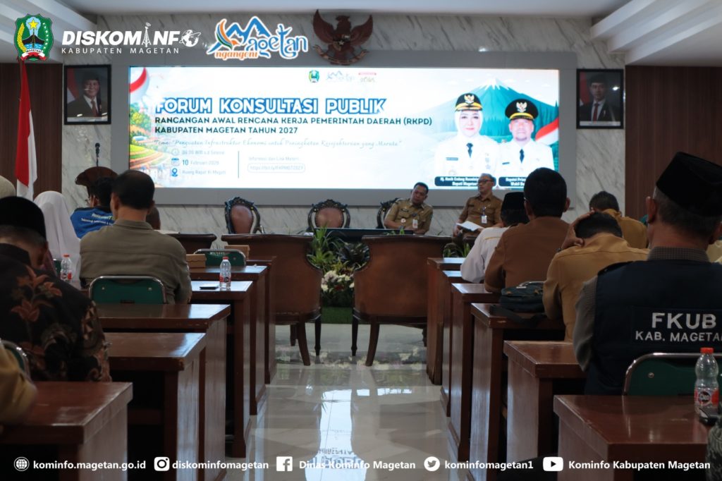 Pemerintah Kabupaten Magetan melalui Badan Perencanaan Pembangunan, Penelitian, dan Pengembangan Daerah (Bappelitbangda) gelar Forum Konsultasi Publik (FKP) dalam rangka Penyusunan Rencana Kerja Pemerintah Daerah (RKPD) Tahun 2027. Kegiatan tersebut secara resmi dibuka oleh Wakil Bupati, Suyatni Priasmoro, S.H., M.H., di Ruang Rapat Ki Mageti Setda Magetan, Selasa (10/02/26).