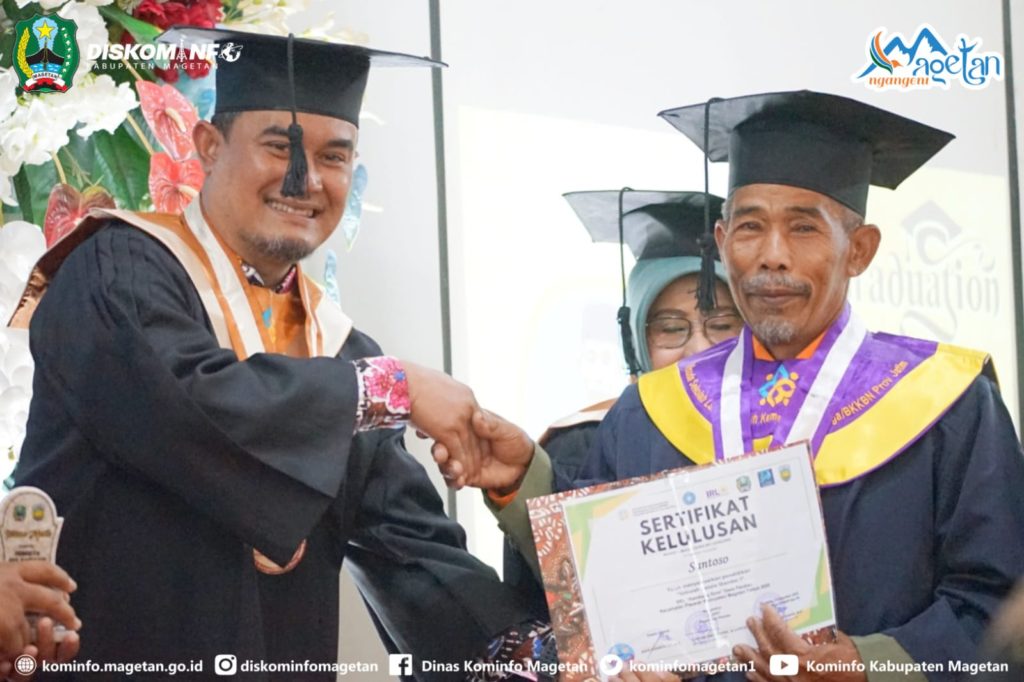 Wisuda Sekolah Lansia Tangguh yang digelar DPPKBPPPA Magetan meninggalkan kesan mendalam bagi para peserta, salah satunya Bu Partini, wisudawati berusia 53 tahun asal Desa Plumpung, Kecamatan Plaosan. Sehari-hari ia berprofesi sebagai penjahit, sementara suaminya bekerja sebagai petani.